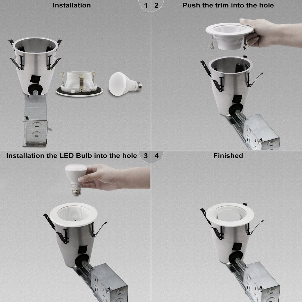 Whether you're installing recessed lights in new construction or remodeling a room, first plan your light placement. 4.7 out of 5 stars. Cut all of the ceiling holes at once it can be tempting to cut a hole, wire and place the light, then move onto the next one. Easy to install, look great, and the perfect color white lights. An inconspicuous design makes it easy to integrate recessed lighting with the room's existing décor and lighting systems. Then mark the planned locations before drilling or cutting any holes. 12 pack 4 inch led new construction led recessed light kits, ic rated housing and dimmable led downlight, damp rated, 10w, 750lm, 3000k (warm white), ul listed 4.0 out of 5 stars 2 $199.99 $ 199. The wire should run from the electrical source to a switch, and then from the switch to the first can. 99 ($9.17/count) get it as soon as wed, jan 13. Behind the scenes, recessed new construction housings supply the power and hold the light bulb within the ceiling space. You can install recessed lighting with new construction to electrical cable from a wall switch in only a few minutes with basic hand tools. But until now they were too big,hard to install, and pricey. Each subsequent can is connected with another piece of romex.